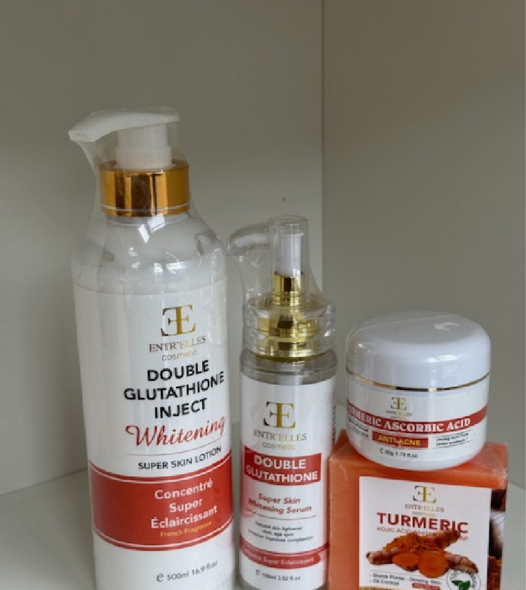Une gamme super clarifiante enrichie en glutathione, curcuma, acide kojique, arbutine, vitamine C et collagène, conçue pour uniformiser le teint et affiner la peau en douceur. Elle aide à réduire les taches, les marques d’acné et les zones sombres, tout en révélant une peau plus lisse, homogène et lumineuse.
